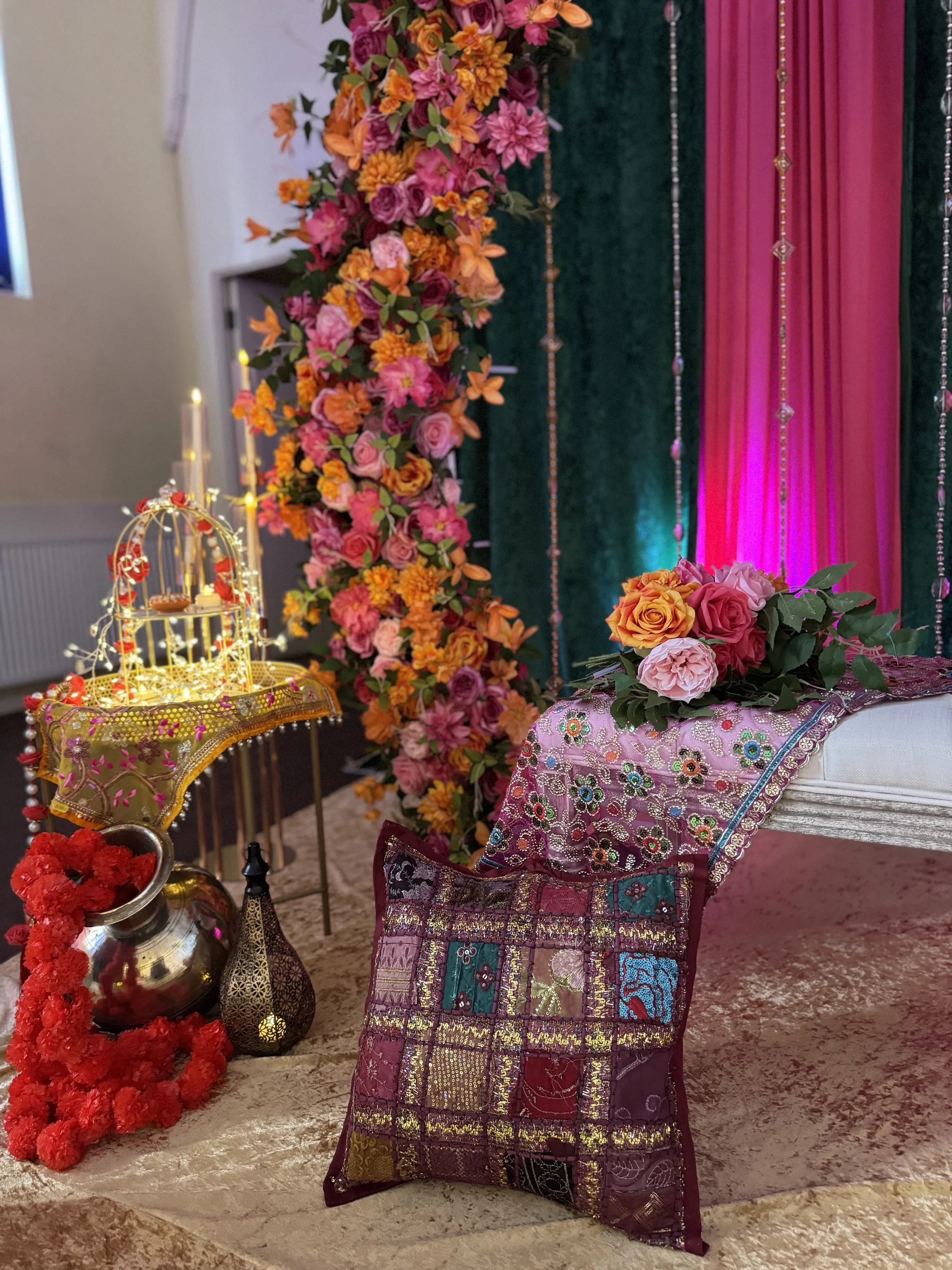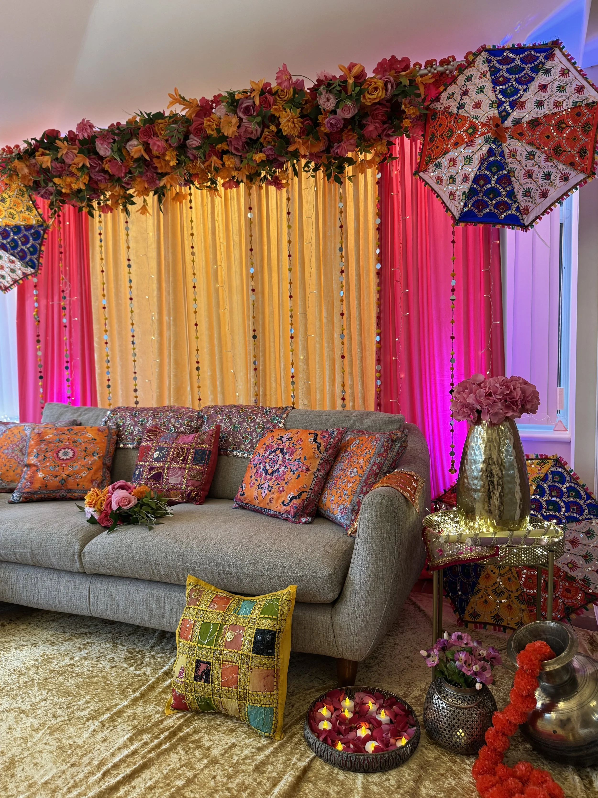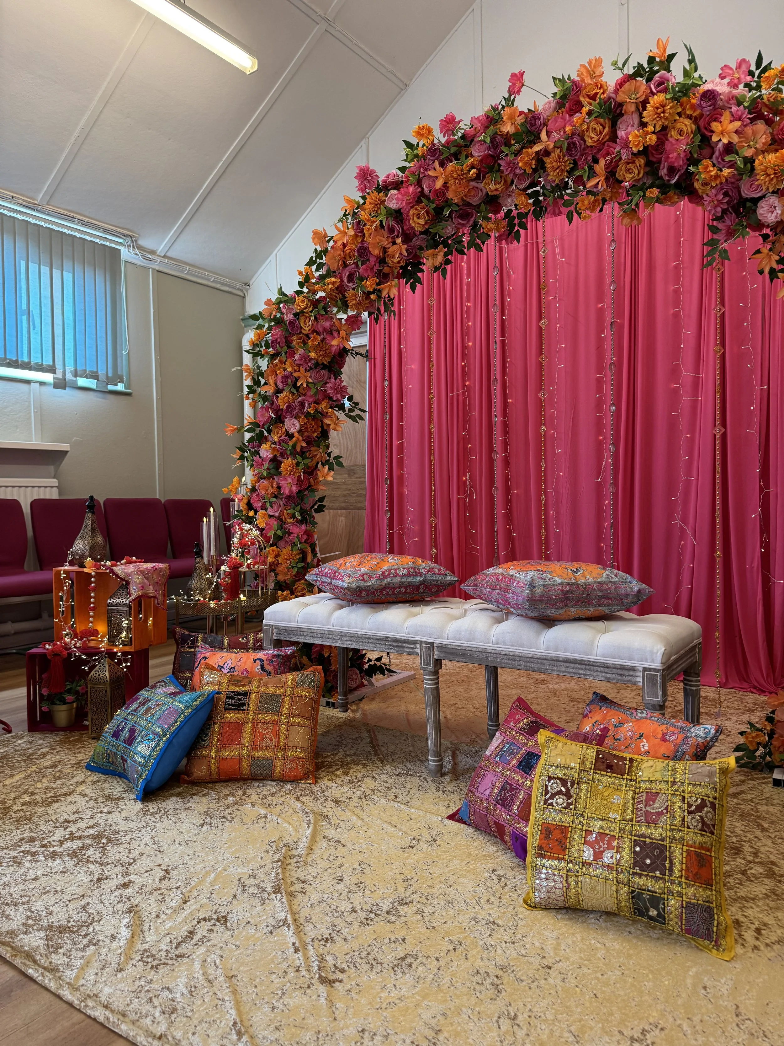 At Anaqa Events, we specialise in creating beautiful and immersive Mehndi decor that brings colour, culture and celebration to life. As Lincoln’s first Mehndi decor specialists, we design bespoke backdrops, stages and photo areas using our curated pieces, vibrant palettes and signature styling. We offer both venue and home Mehndi setups, crafted with care and attention to detail — from traditional elements to modern themes — ensuring your celebration feels joyful, personal and unforgettable.