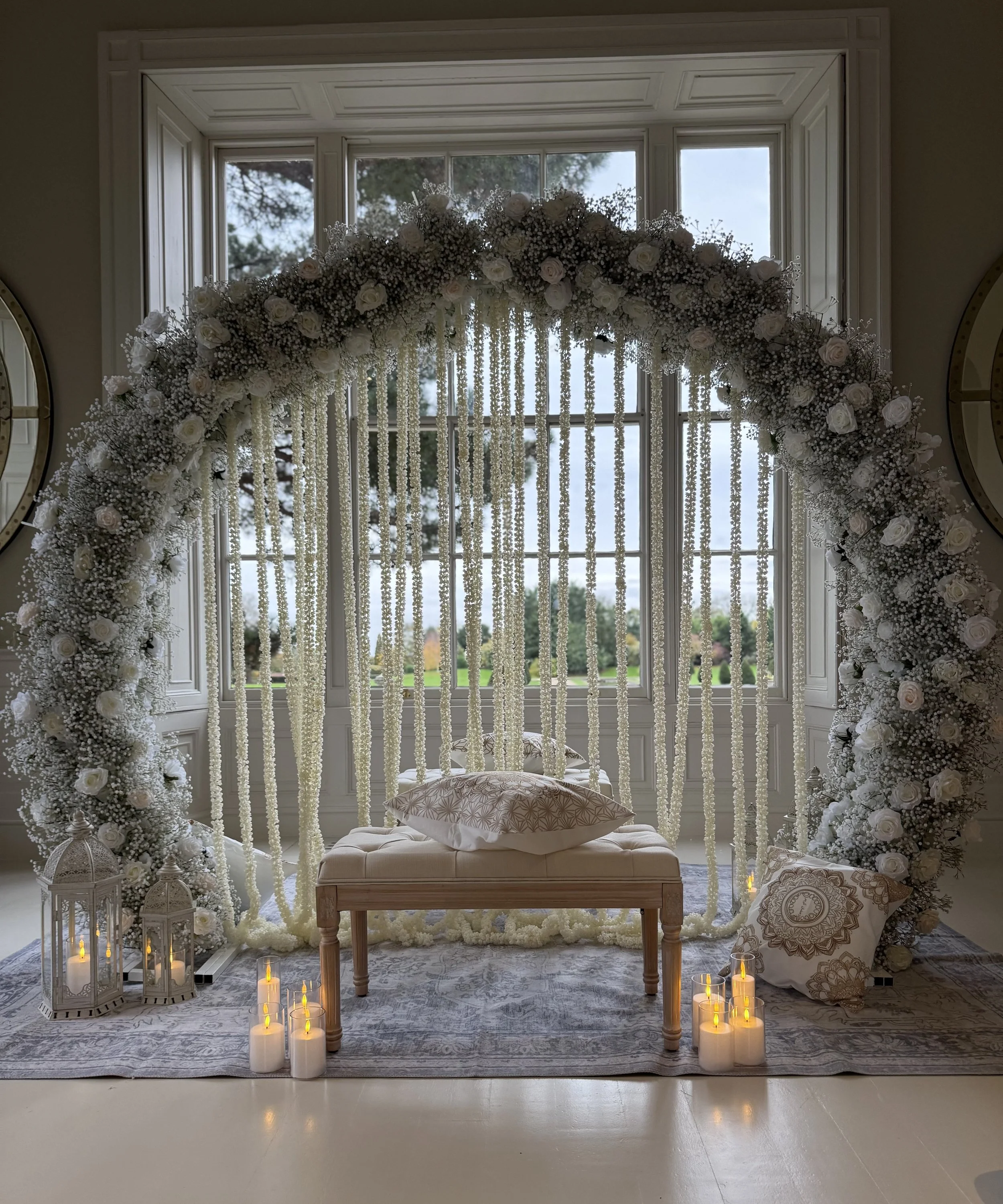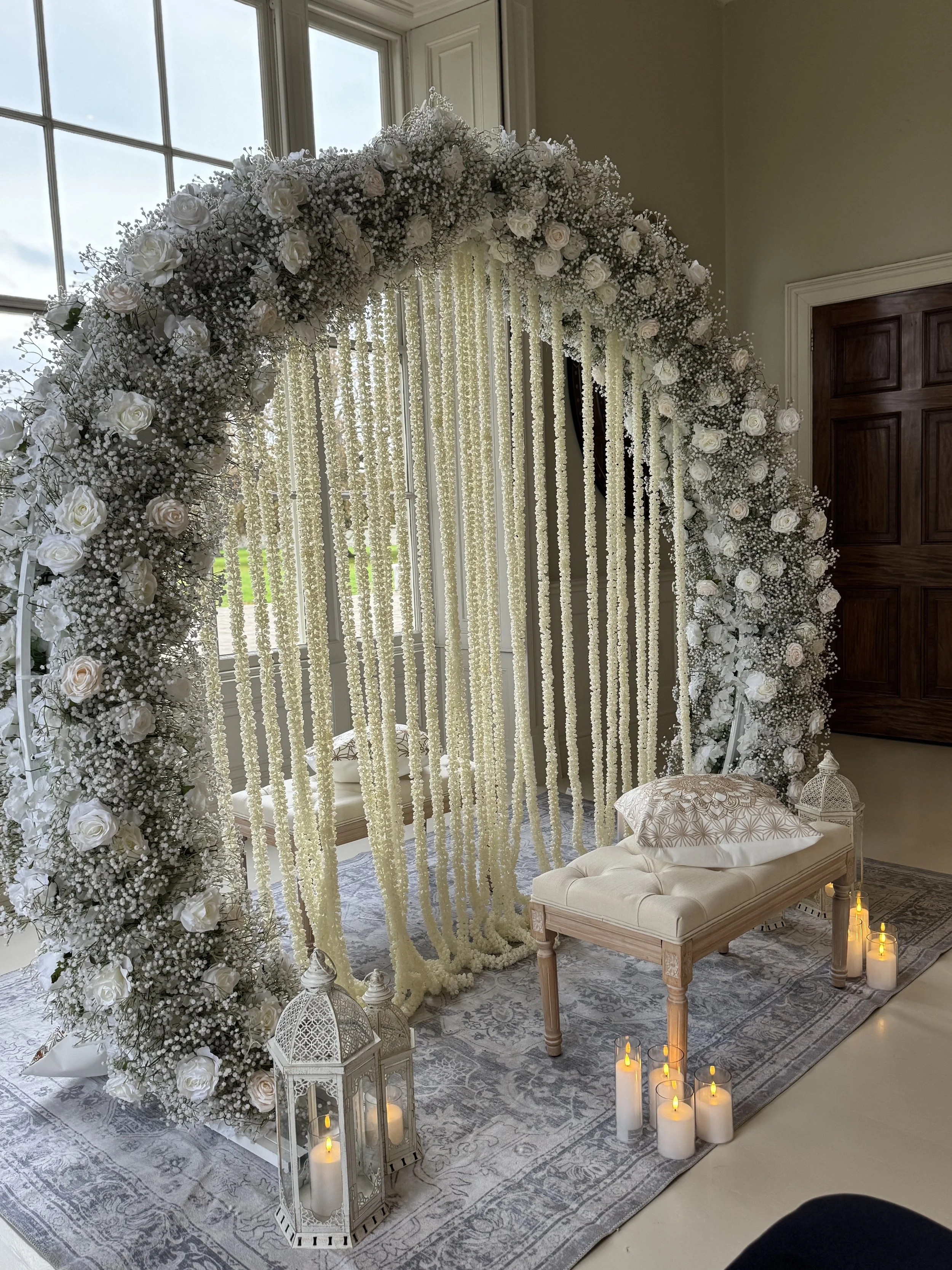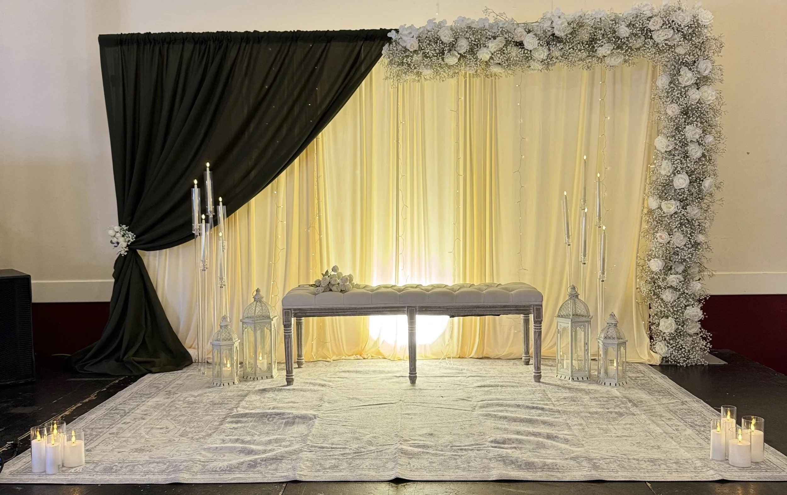 At Anaqa Events, we create refined and beautifully styled Nikah and Bridal decor that brings grace, warmth and meaning to your special day. From soft, romantic palettes to modern, luxurious designs, we craft bespoke backdrops, stages and photo areas tailored to your vision. Using our high-quality silk florals, elegant draping, sailboards and signature props, we style both home and venue setups, ensuring your Nikah or bridal celebration feels intimate, timeless and unforgettable.